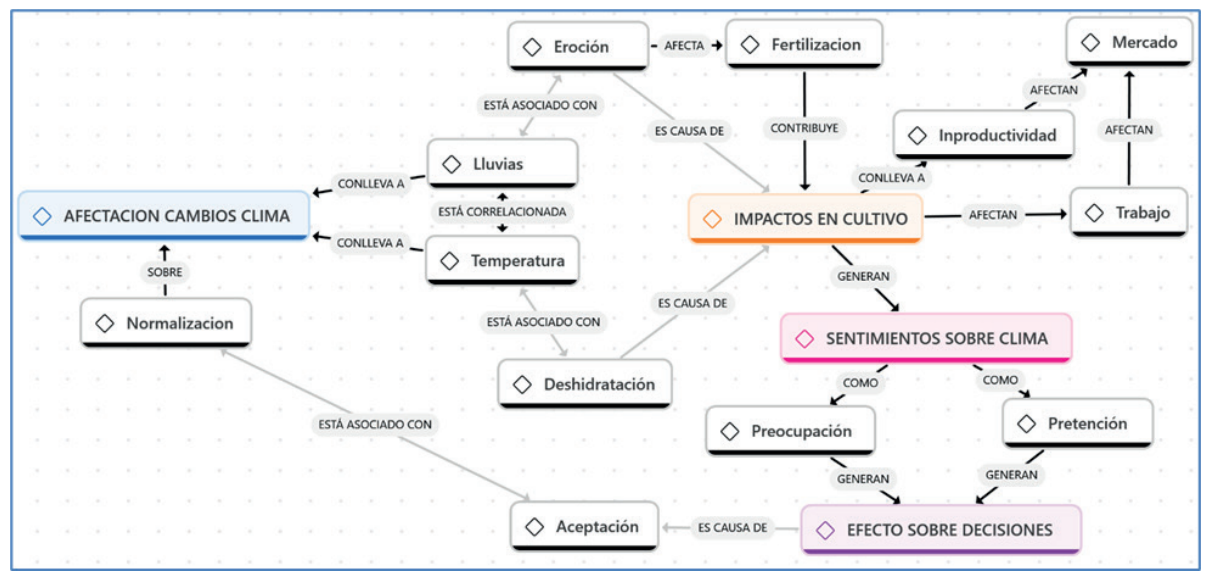 Results: a focus on the relationship with the land and climatic factors that affect the agricultural process is suggested. Climate variability is perceived as a challenge to the sustainability of its activities, generating an emotional response that influences decision-making and adaptive strategies.
