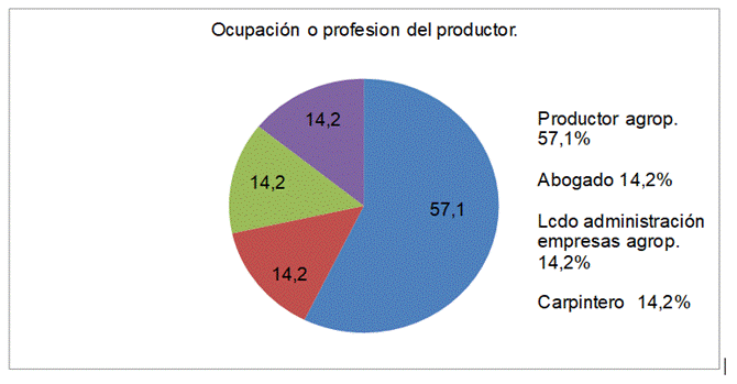 Tomando en cuenta los resultados gráficos de las encuestas (figuras 1-5) realizadas a siete productores agropecuarios del municipio Colón se puede observar que se contaban con dos mujeres y cinco hombres, cuatro se dedicaban al trabajo de campo, uno de los encuestados de ocupación es carpintero atendía su fundo alternando sus actividades conjuntas al igual que un licenciado en administración de empresas agropecuaria y un abogado. Sus edades con diversos rangos con tenencias de tierras de diferente proceder manejaban sus predios de manera muy similar.