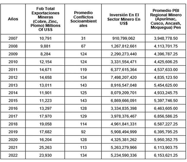 Impact of socio-environmental conflicts on mining exports in Peru during the period 2007-2022
