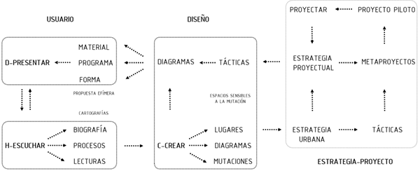 La estrategia proyectual desarrollada en esta investigación se ha llevado a cabo en colaboración con expertos en arquitectura y urbanismo, así como con la participación activa de la comunidad local. El enfoque se ha centrado en la transformación de los MAPUs inactivos en espacios hodológicos activos mediante el diseño de corredores de uso mixto y específico. Estos corredores se han planeado cuidadosamente para fomentar la continuidad y diversidad en el uso de las calles, aprovechando al máximo las infraestructuras existentes y los recursos productivos. Esta estrategia proyectual es esencial para lograr la revitalización de los MAPUs y su integración efectiva en la vida urbana contemporánea.