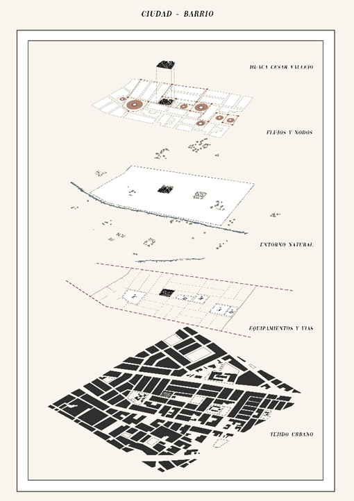 Figura 5. Lecturas proyectuales del tejido urbano donde se emplaza la Huaca César Vallejo en José Leonardo Ortiz, Chiclayo