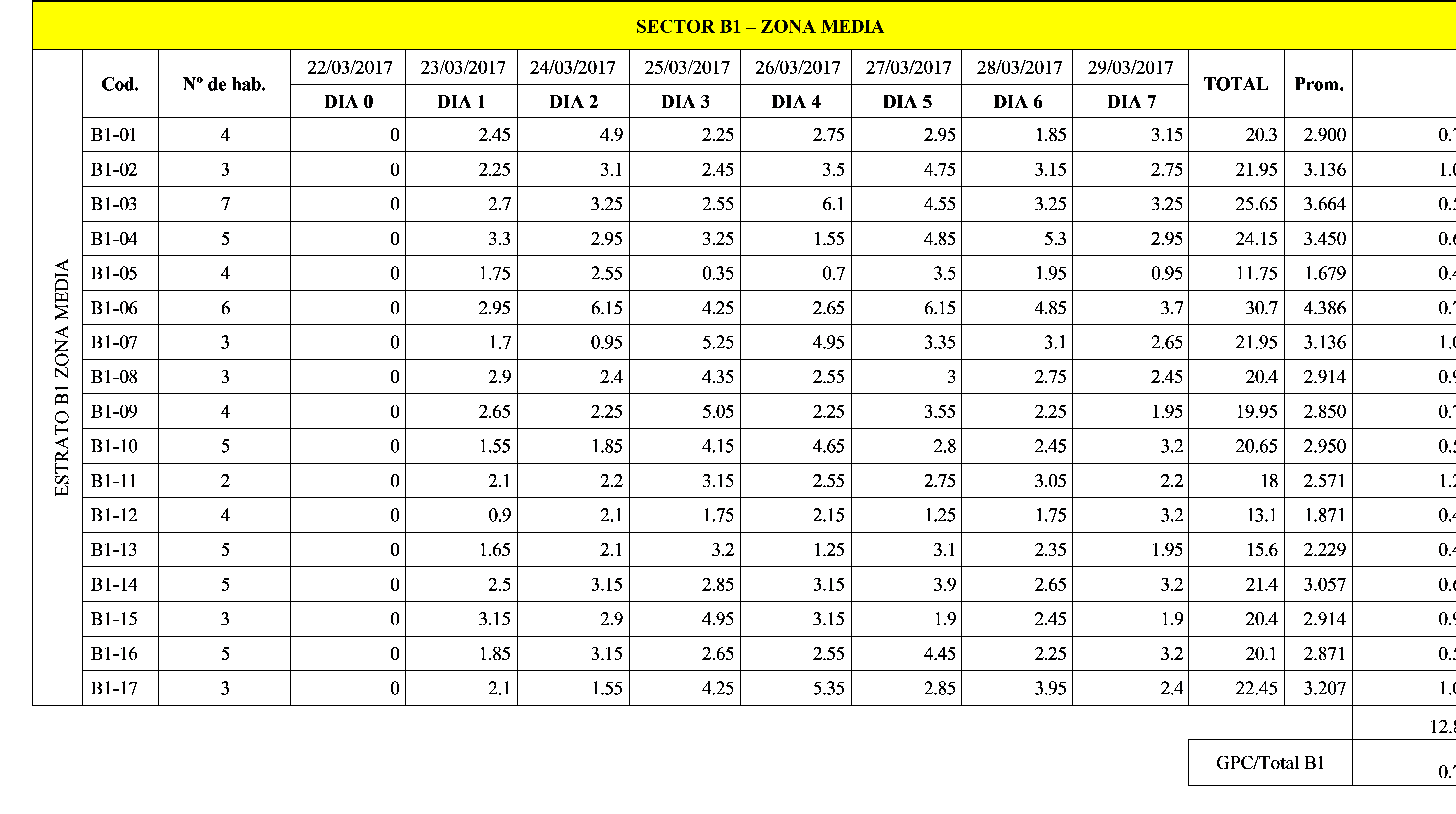 1. The daily per capita generation of waste by residents of the Villa El Salvador district (0,632 kg/day) has been determined using various tools employed by the group conducting the study, which included both qualitative and quantitative methods. The study was supported by the Ministry of the Environment and the municipality of Villa El Salvador.