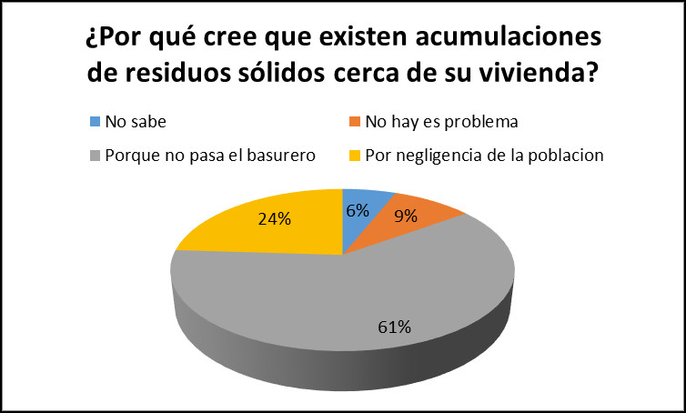 Villa el salvador no es ajeno a este problema por lo tanto el Municipio Distrital de dicha comuna realiza estudios técnicos en tema de residuos sólidos, tal como es el Estudio de Caracterización de Residuos Sólidos Municipales, insumo fundamental para el diseño de los sistemas de recolección y disposición final en el corto, mediano y largo plazo.(9,10,11,12)